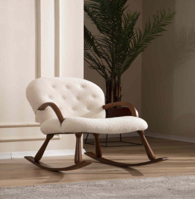 Ascenda 28 Inch Modern Rocking Chair, Two Side Pocket ,Teddy White (Ivory)